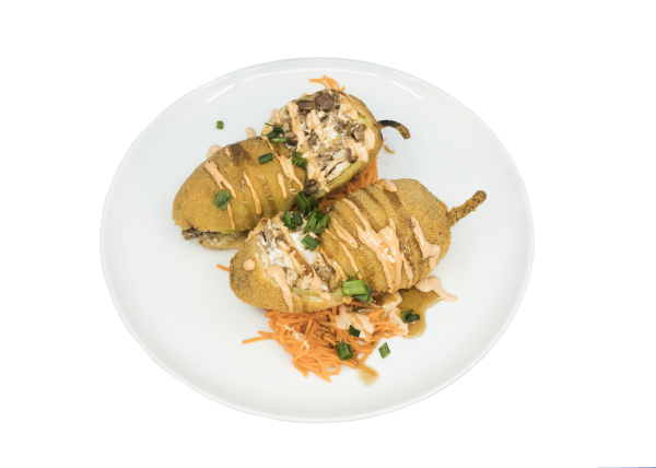 Chiles Rellenos$70.00 2 Piezas de chiles caribes capeados, rellenos de camarón, carne de res, pollo y queso philadelphia, montados sobre una cama de zanahoria rayada de aderezo chipotle y acompañados de cebollín. Platillo con 2 Piezas. Quantity - 1 + Add to cart Category: Entremés Related products Dedo de queso $25.00 EntremésAdd to cart Mixto horneado – Yakimeshi $115.00 EntremésAdd to cart Yakimeshi $75.00 EntremésAdd to cart Brochetas $60.00 – $75.00 EntremésSelect options